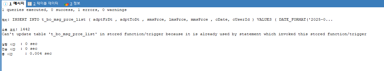 오늘의 일기 트리거를 통해서 같은 테이블에 가공이 들어가고 싶었다. 하지만 불가능 하단다.. 눈물 왜? 무한루프가 돌 수 있기 때문에 https://stackoverflow.com/questions/8504904/insert-into-same-table-trigger-my